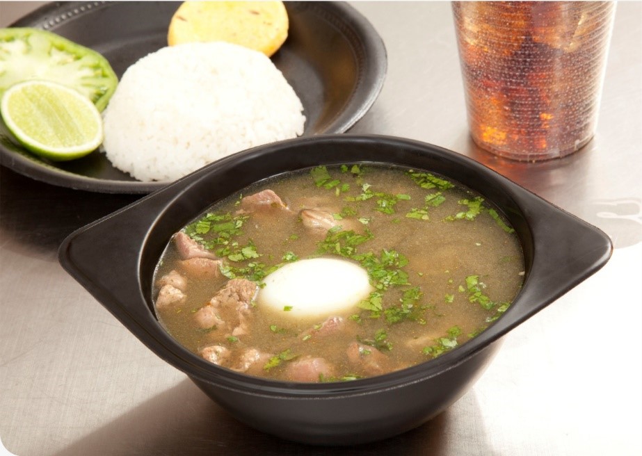 acompañado de huevo cocinado, limón, arepa y porción de arroz.