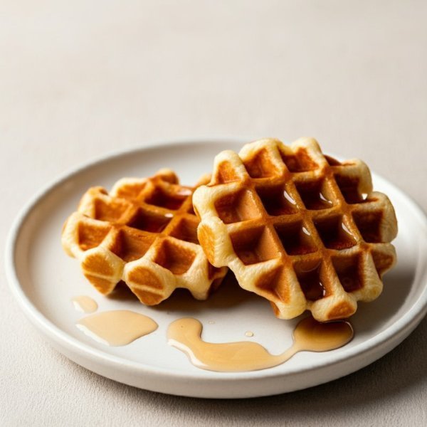 Dos unidades de waffle de pan de yuca con miel de maple.