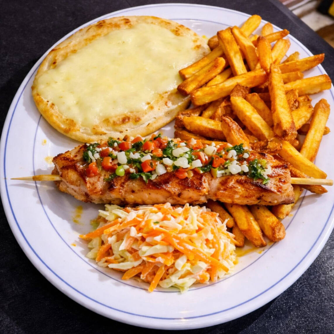 Carne de res o cerdo 120g, papas a la francesa, lechuga tomate cebolla, vinagreta