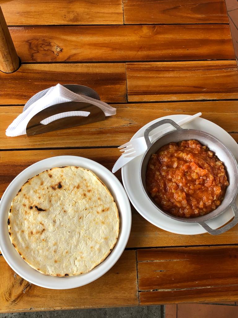 Arepa blanca con Tomate y cebolla.
