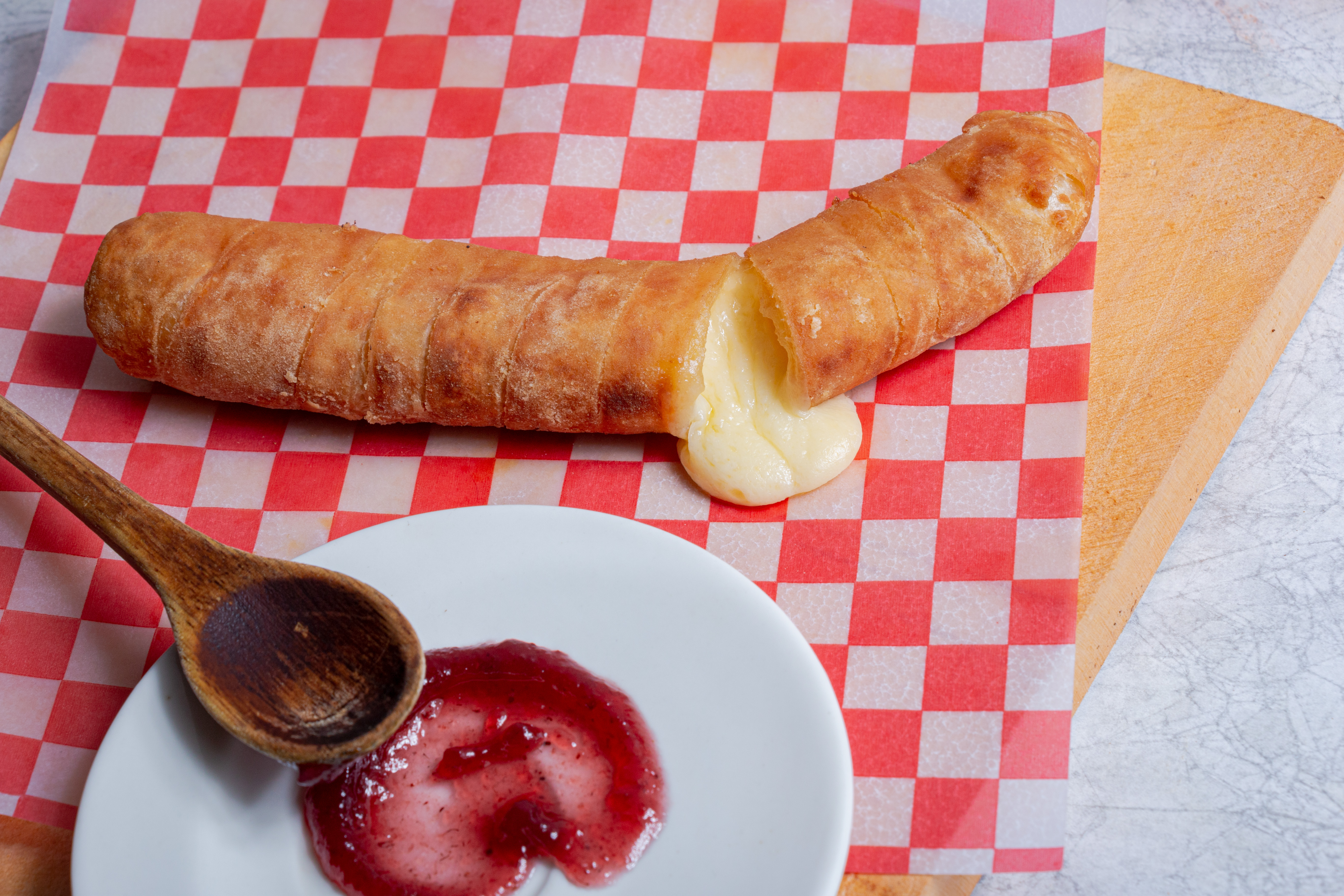 1 palito relleno 100% de queso mozzarella, con salsa de tu elección.
