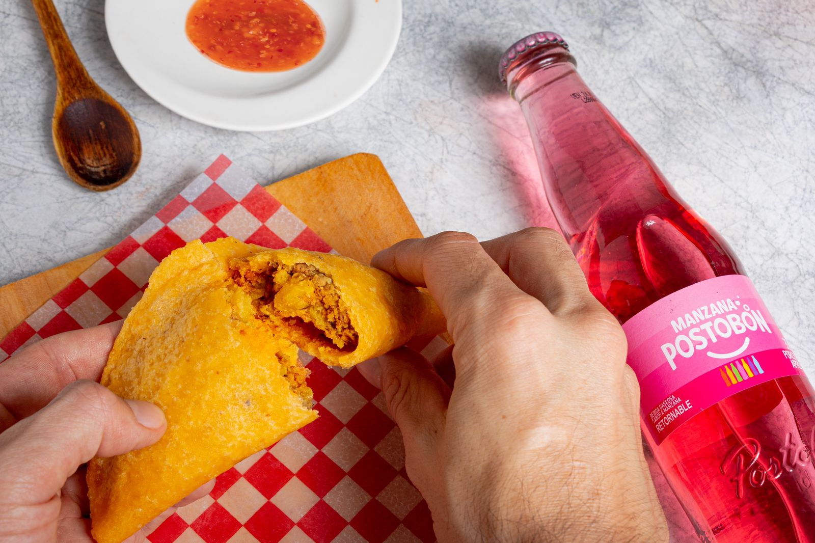 1 empanada hecha con papa cocida y carne molida de res (sin gaseosa).
