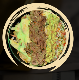 Carne desmechada, pico de gallo, queso mozzarella y guacamole.