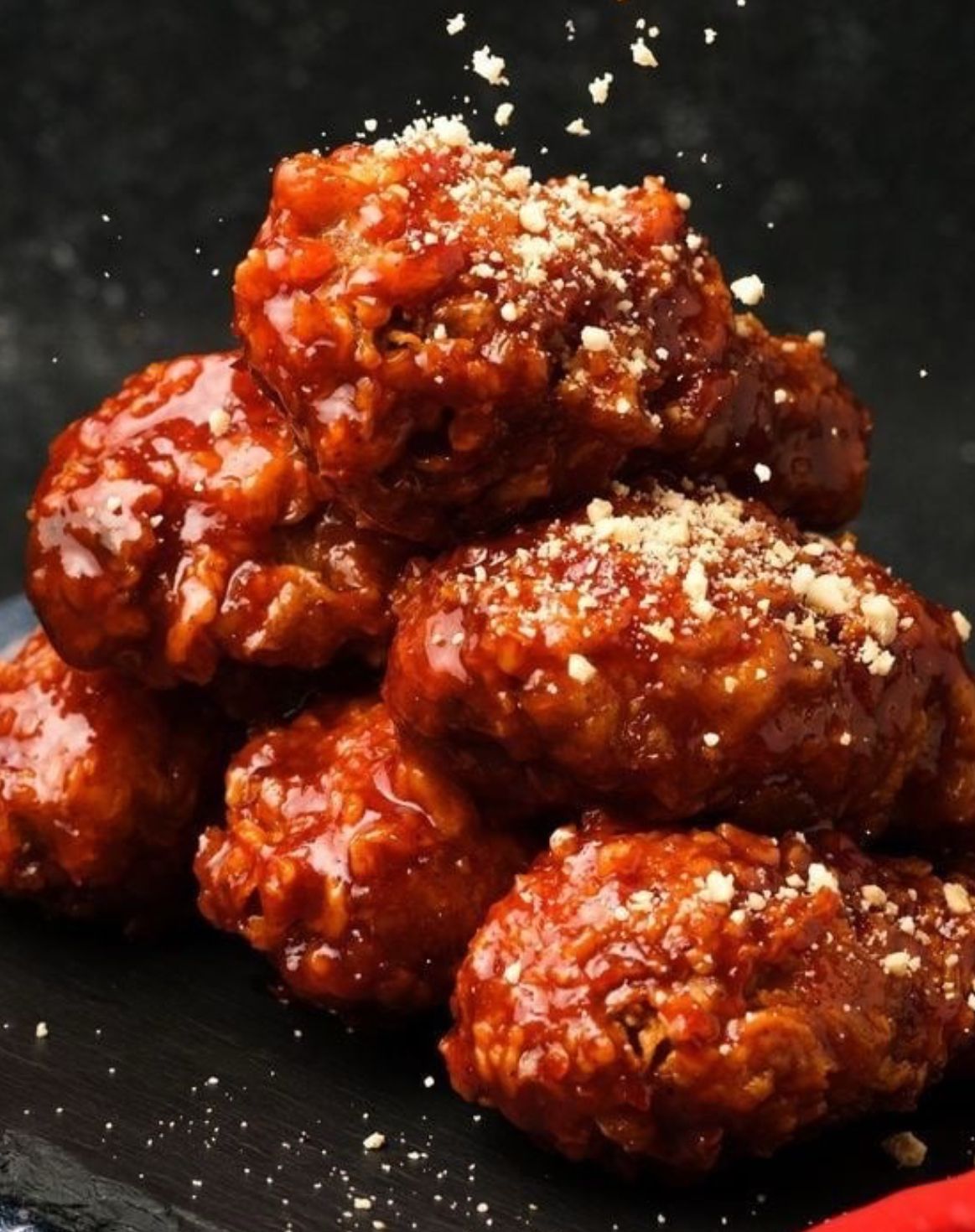 Pollo teriyaki, pico de gallo, tocineta y queso mozzarella.