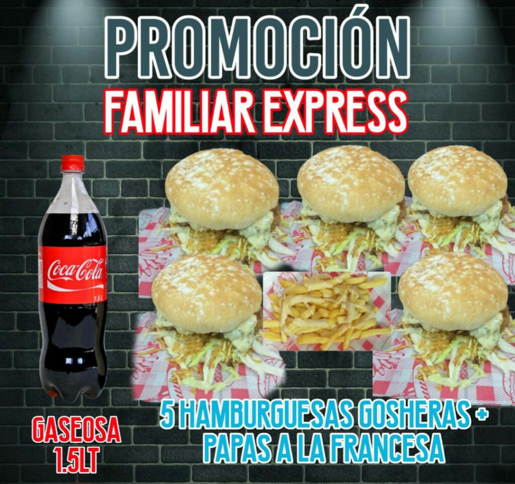 Papas a la Francesa*2 + Coca cola 1.5 litros*1 + Hamburguesa Sencilla*4