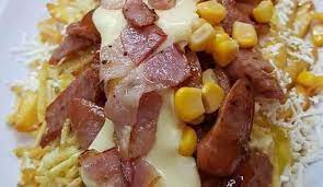 Maíz, tocineta, salchicha ranchera, queso y salsas de la casa.
