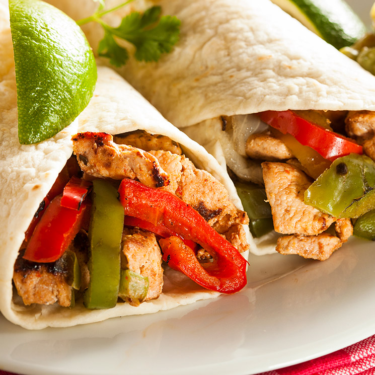 Maíz, tortilla de harina, queso, pollo, carne en trozos, guacamole y salsas de la casa.
