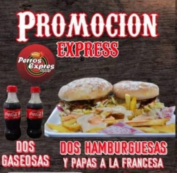 Carne de Hamburguesa, Filete de Pollo, Carne Ranchera, Huevo Queso tocineta, lechuga, ripio de papas, Ensalada de lechuga y máximo 4 salsas, roja, rosada, mostaza, BBQ, Showy, maíz. Acompañado 80grs de papas
