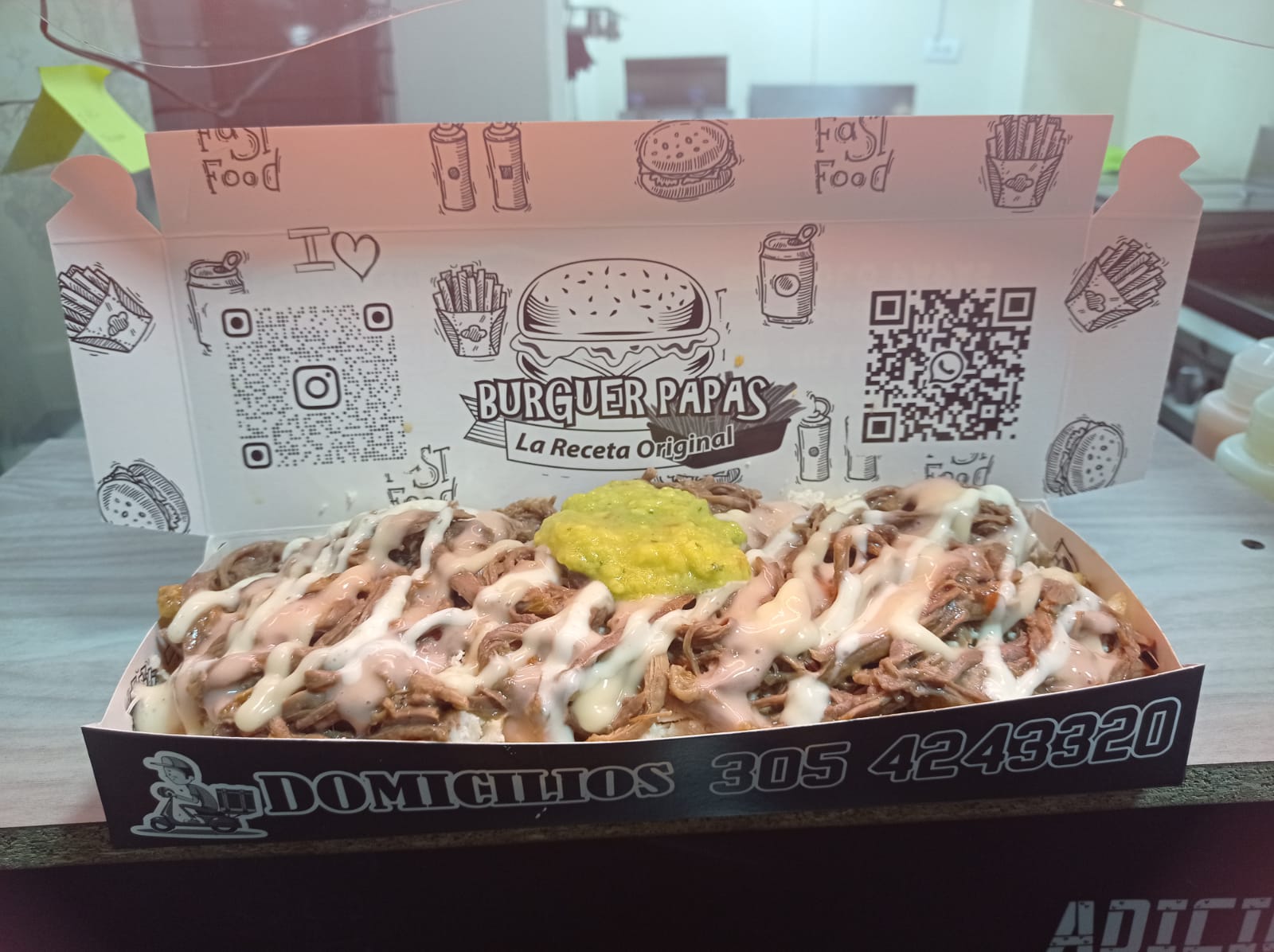 Base de papas a la francesas crujientes de 300gr, pollo desmechado, carne de res premium, guacamole y salsas al gusto.