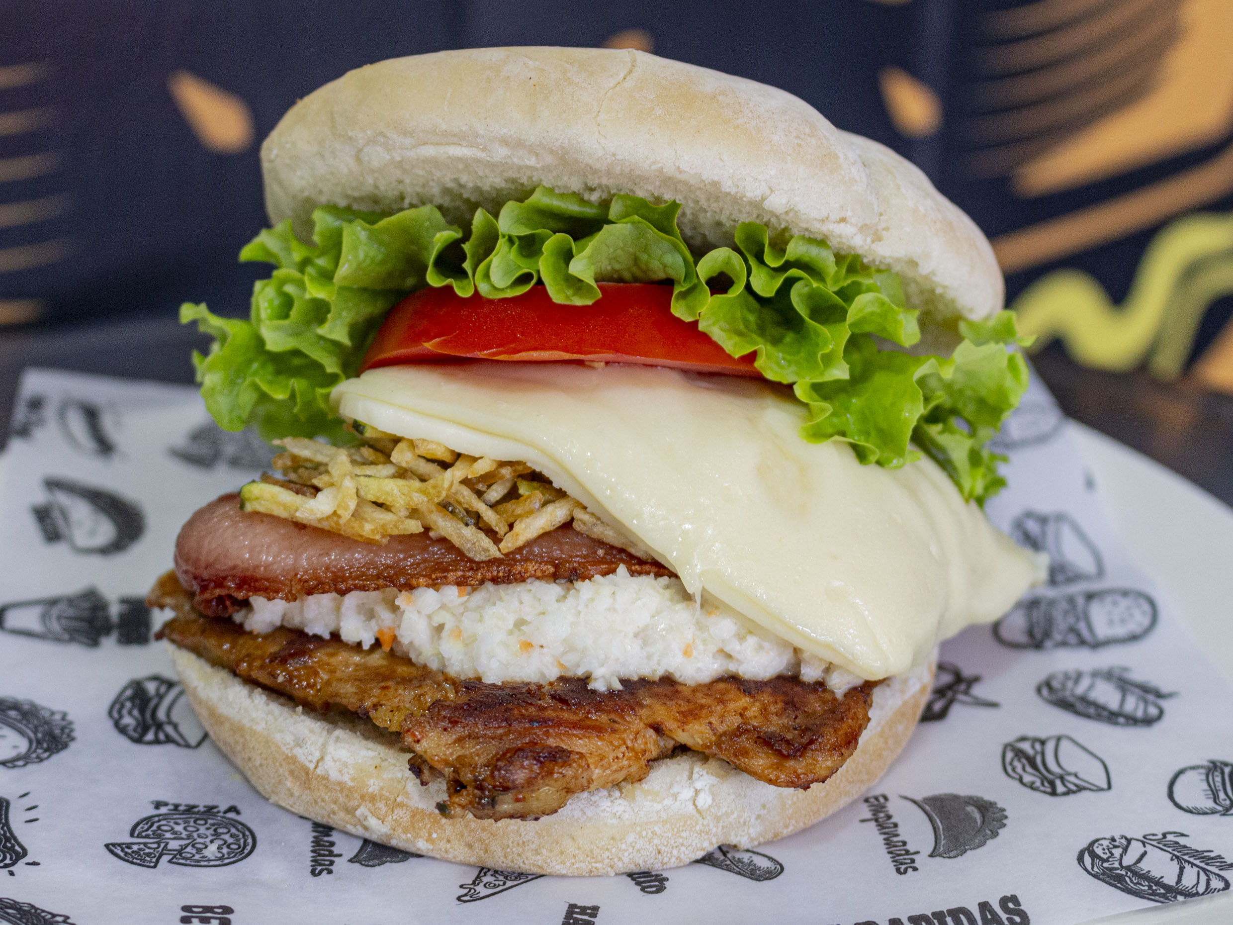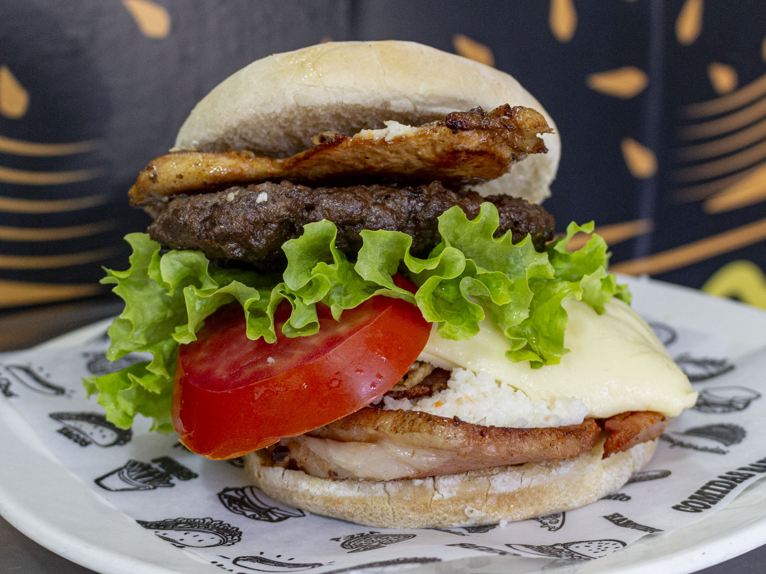 Pan artesanal, pechuga de pollo a la plancha, tocineta, full queso mozarella, ensaladadulce, tomate, lechuga, guacamole y ripio de papa.