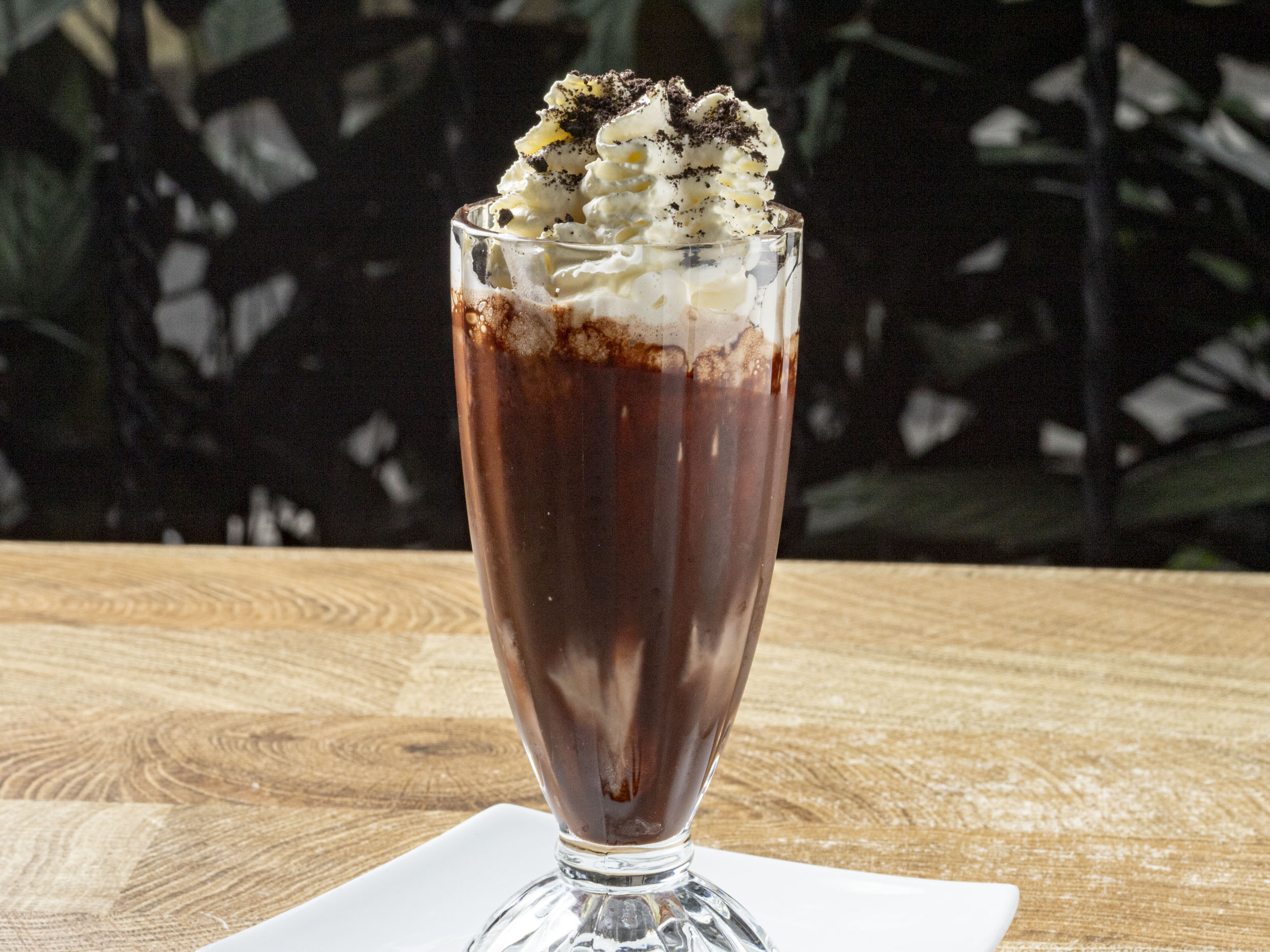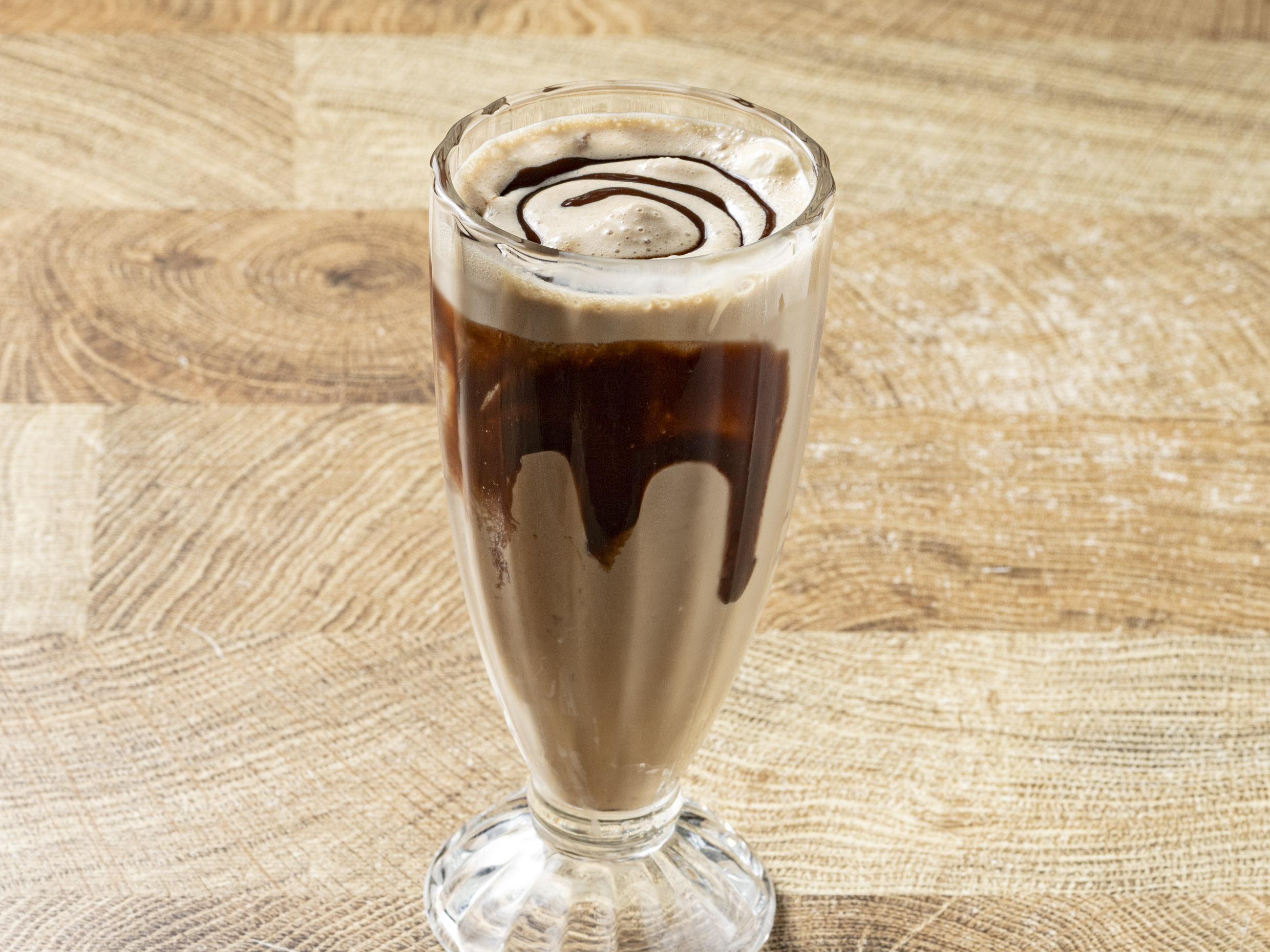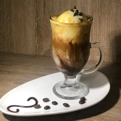 Malteada con helado de vainilla, café espresso de origen, crema de whisky Baileys, decorada con salsa de chocolate.