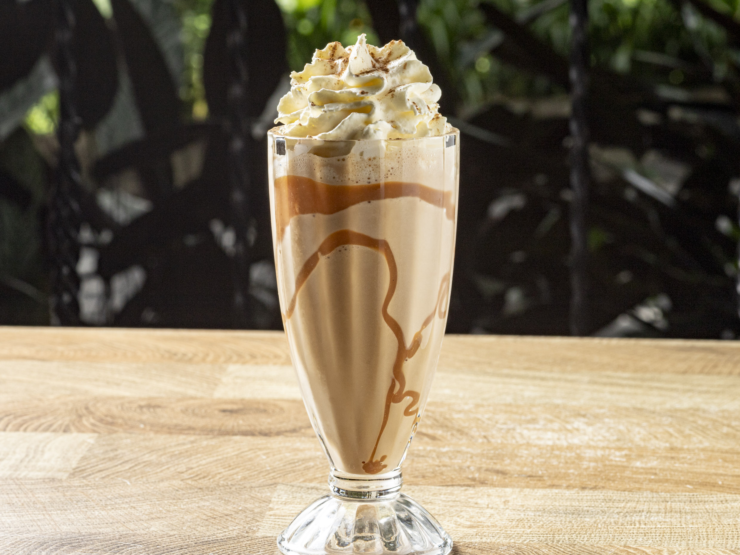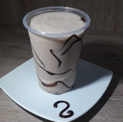 Café espresso, batido con helado de vainilla, crema de whisky, decorado con salsa Hershey´s y salsa de chocolate.