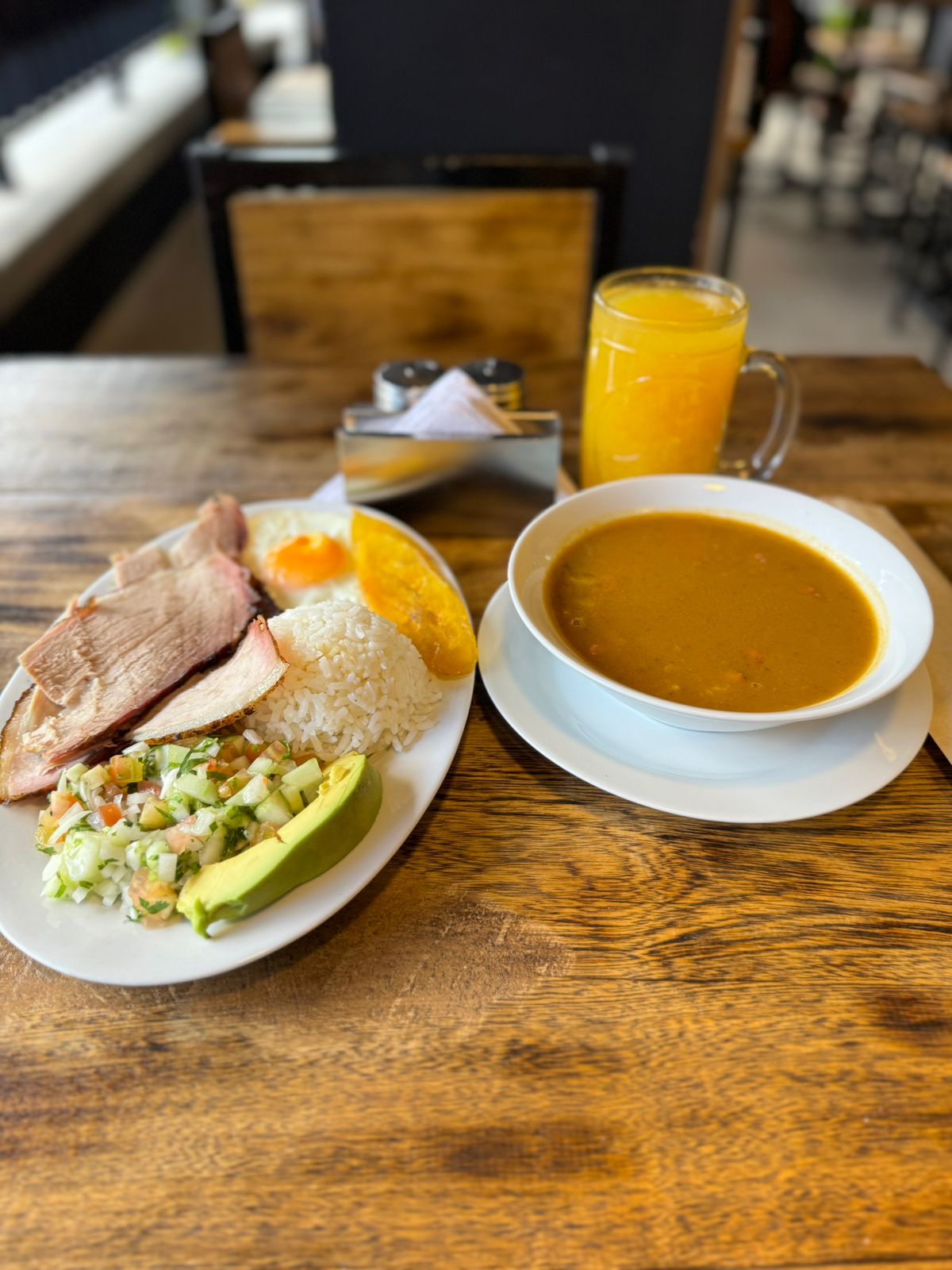 Disfruta de nuestra deliciosa carne a la llanera, acompañada de arroz, ensalada fresca, tajadas doradas, aguacate y huevo. Todo esto acompañado de sopa del día y un jugo refrescante. ¡Un menú completo y lleno de sabor!