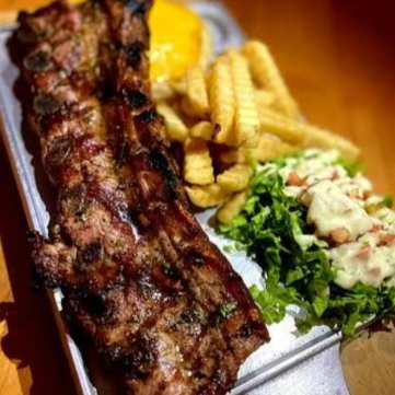 Deliciosas costillitas de cerdo por 450 grm bañadas en salsa a elección acompañadas de papas francesa