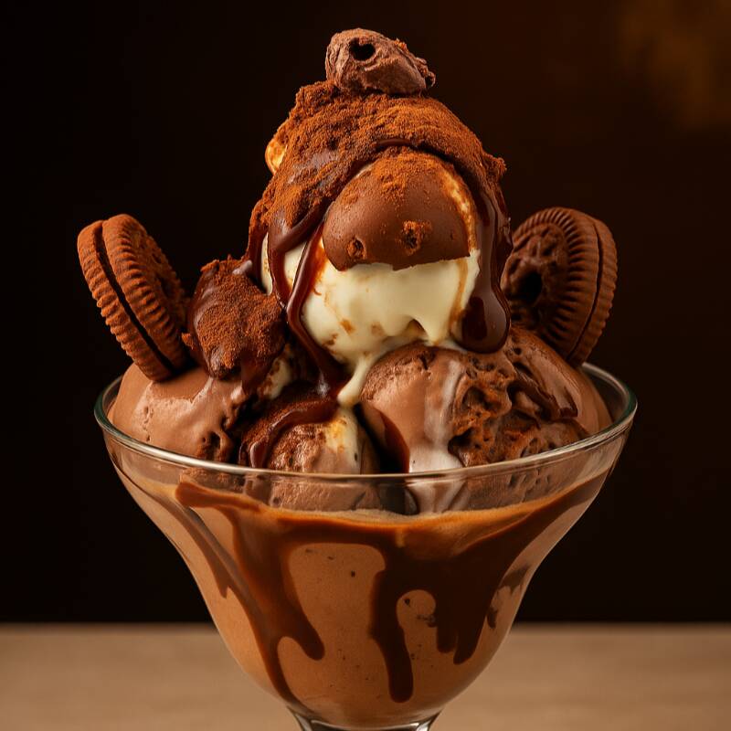 Helado cremoso (tres bolas) con trozos de galleta Oreo, bañado con una deliciosa salsa de café al licor que realza su sabor. Una experiencia intensa y dulce.