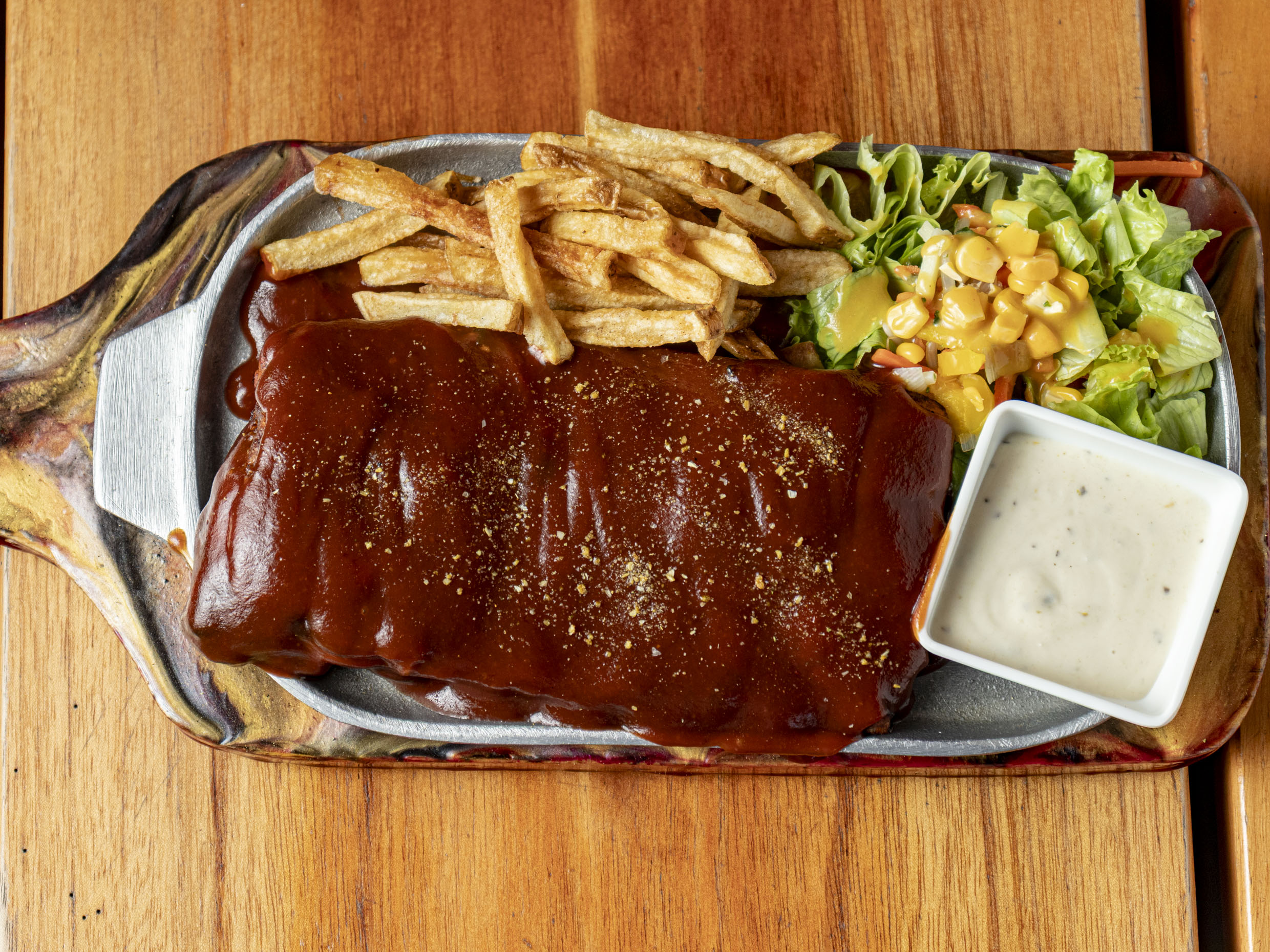 500 grs de costilla de cerdo seleccionada, con un proceso de cocción lenta para conservar toda su jugosidad en su punto. Los huesos quedan limpios.