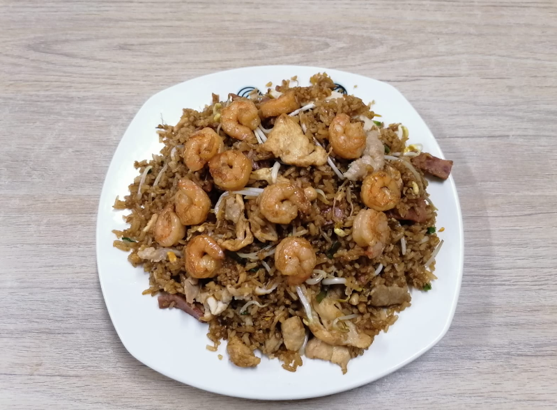 Plato personal de arroz chino especial con camarones, perfecto para una persona
