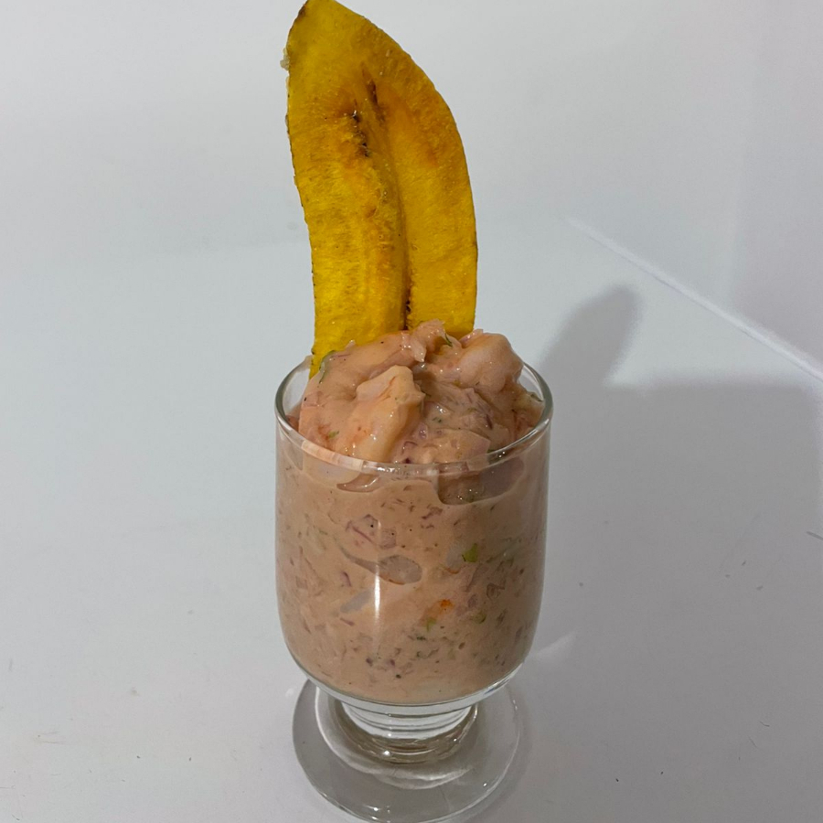 canastillas de platano, rellenas conun rico coctel. elige el tuyo camaron o mixtura de mariscos