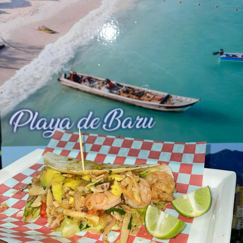 tortilla de maiz, cebolla en juliana, pimenton en juliana, salsa de la casa, queso y proteinas a elegir (camaron o mixtura de mariscos)