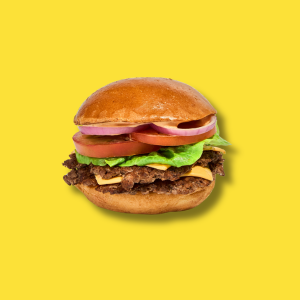 Pan brioche artesanal con doble carne smash, queso americano, cebolla, tomate, lechuga cogollo fresca, pepinillo y salsa champs.