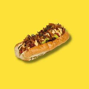 Pan, pulled pork, chicharrón, cocineta crunch con pico de gallo fresco, guacamole hass artesanal, salsa victoria, un toque de BBQ chipotle y coronado con puerro caramelizado. Incluye una porción de papas.
