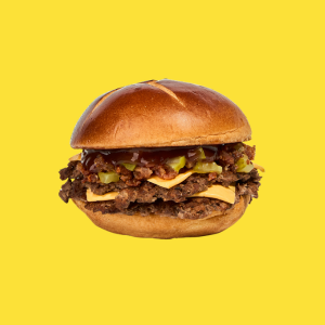 Pan pretzel artesanal, con doble carne smash, un queso americano, lechuga cogollo fresca, queso philadelphia, tocineta crunch, con salsa champs y mayo sriracha* coronado con puerro caramelizado.