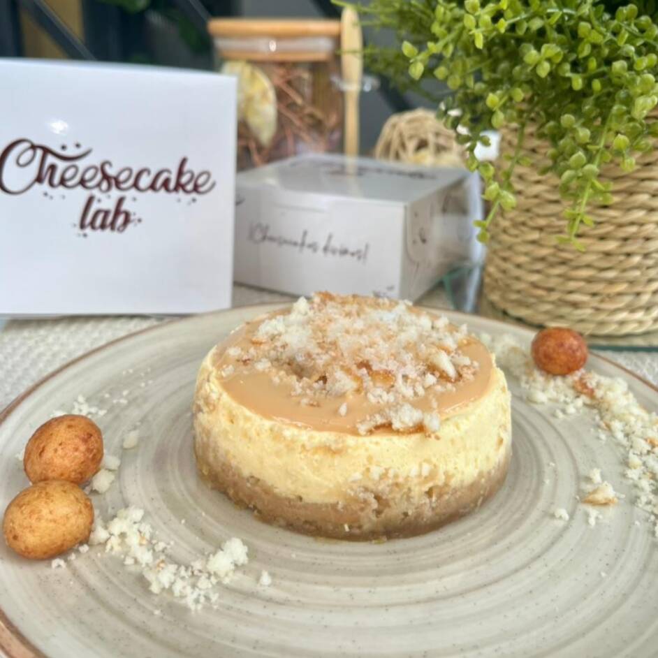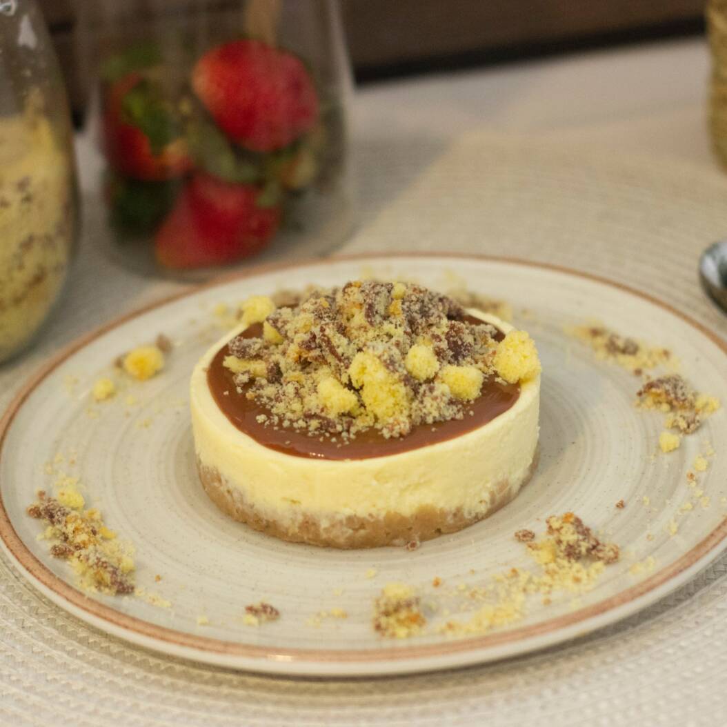 Cheesecake horneado 175 g con cobertura de arequipe.