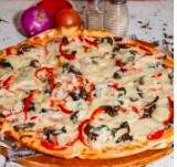 Tomate y Champiñones masa artesanal delgada