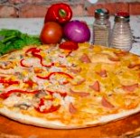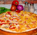 doble queso, salami, pollo, cebolla, champiñones, pimeton y tomate