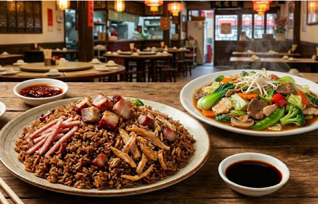 Combinado Arroz, Chop Suey, 1/2 Pollo Frito