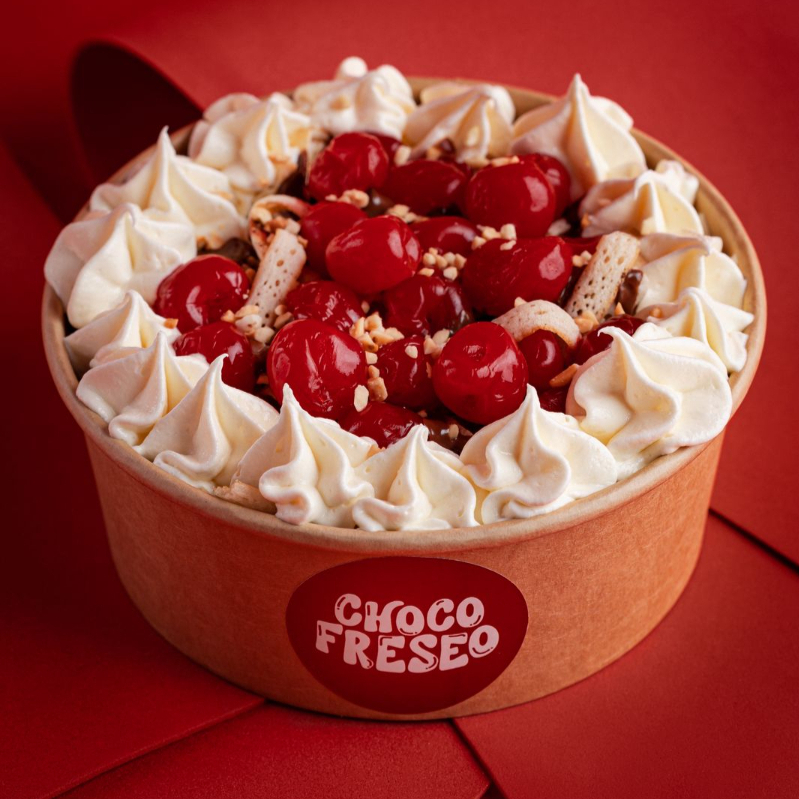 cereza acompañada con nata montada (chantilly) y un acompañante (chocolate negro, blanco o arequipe)