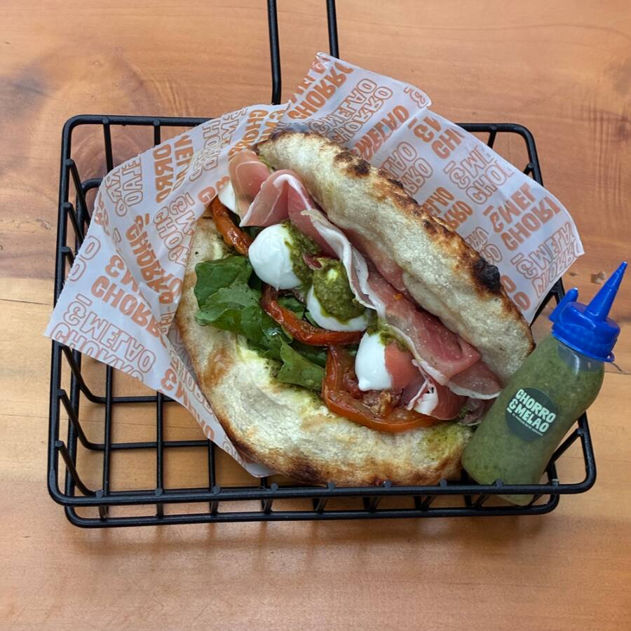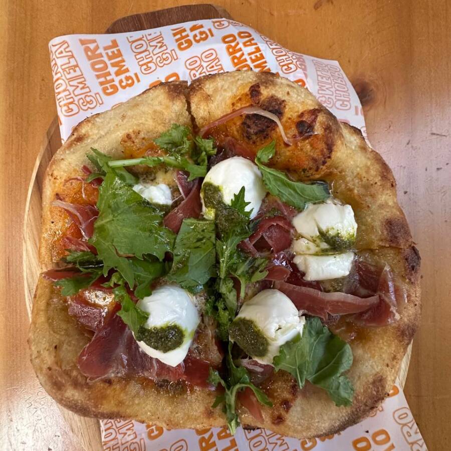 Jamón Serrano, pesto de la casa, queso mozzarella, boconccini di bufala, tomates confitados, rúgula y reducción de balsámico. Harán de esta combinación tu Melao preferido.