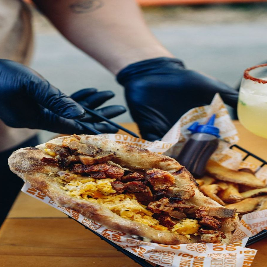 Panceta Chicharronada, huevos revueltos con tocineta crispy, queso cheddar, queso mozzarella y syrup de la casa. Harán de este Melao perfecto para un Brunch o disfrutar en cualquier momento del día.
