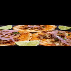 3 Tortillas de maíz con carne al pastor, cebolla blanca, cilantro con piña asada, acompañado, cascos de limón, salsa suave de tomates y jalapeño tatemado.
