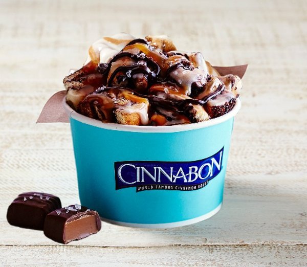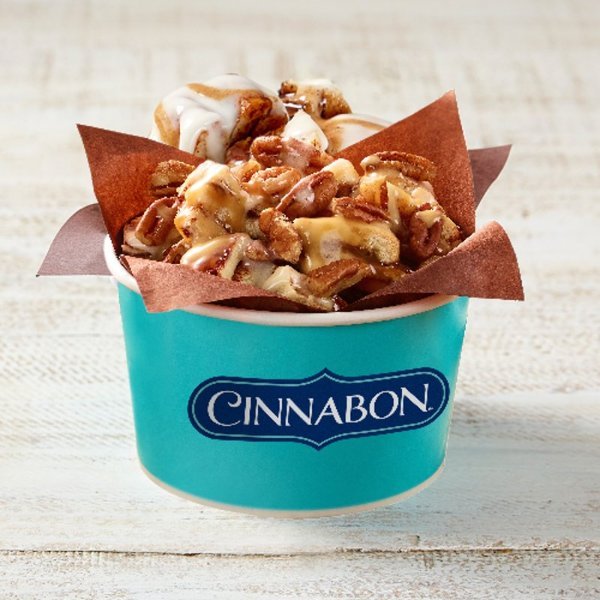Rollos de canela en trozos cubiertos con nuestro delicioso frosting, salsa de caramelo y pecanas.
