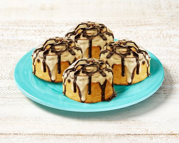 4 bonbites de canela cubiertos de topping de caramelo y pecanas. Recuerda calentar en microondas 10 s.