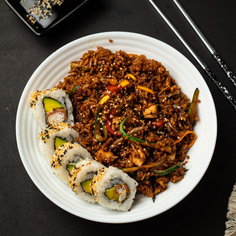 Arroz Yakimeshi + Sushi