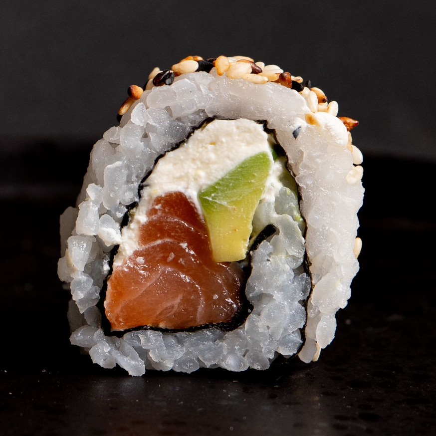 10 BOCADOS DE SUSHI CON , SALMON FRESCO , QUESO CREMA AGUACATE , CON AJONJOLI
