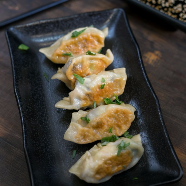 LLEVA 4 EMPANADITAS JAPONESAS , CON VEGETALES Y CERDO , Y SALSA CHILE DULCE