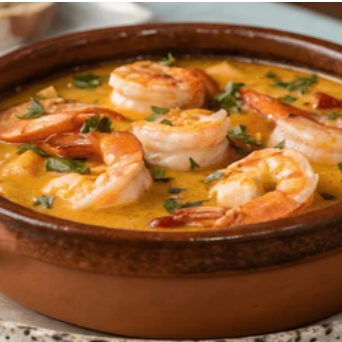 Nutritiva y deliciosa mixtura de mariscos, ( pulpo, calamar, merluza, caracol, copey, palmitos de calamar y camarones), cocidos en un fondo de pescado cremoso con vino, crema marinera y pasta de tomate, acompañado de arroz de coco, ensalada tropical y patacón.