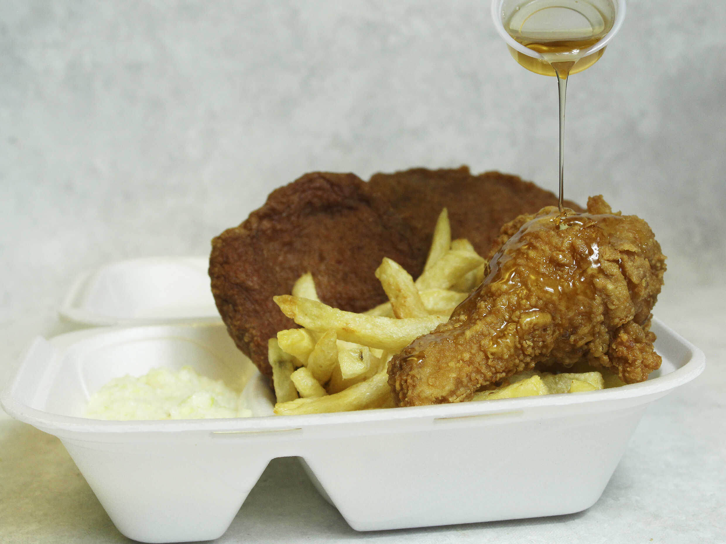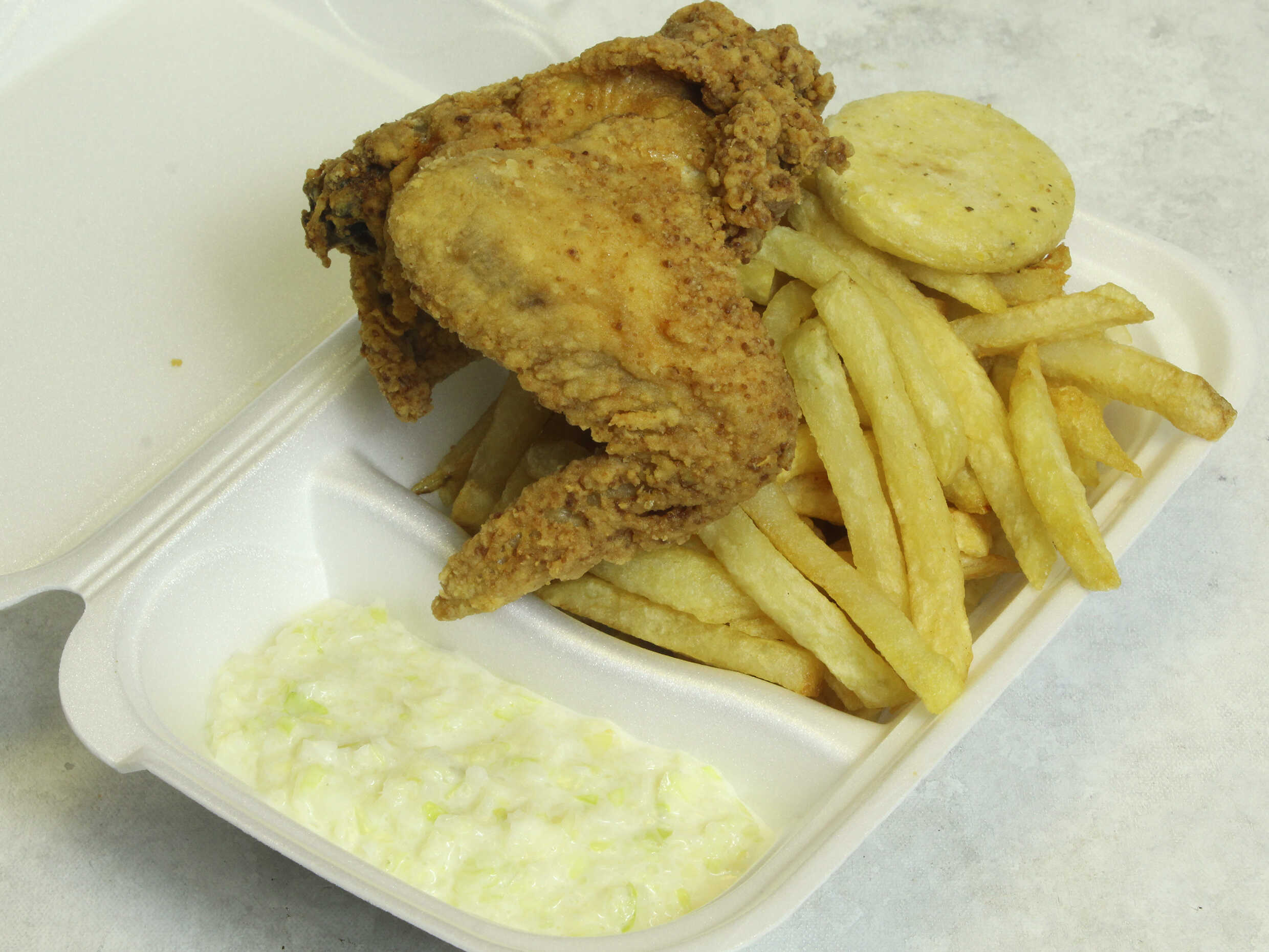 Combo con Muslo Apanado y Torta de Pollo