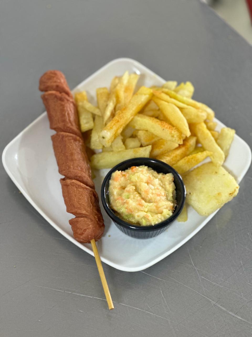 Longuipapa con papas a la francesa y ensalada de la casa.