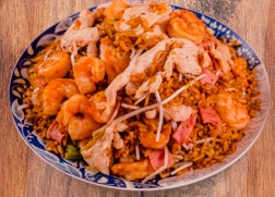 Arroz con cerdo pollo jamón y camarones para 5 personas