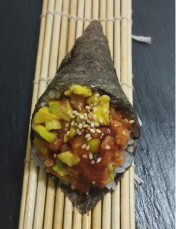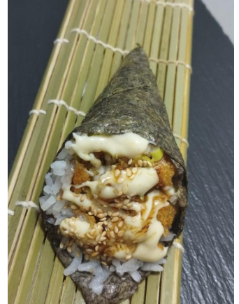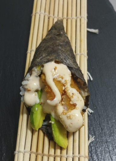 temaki con ,kanikama ,aguacate y salsa spicy