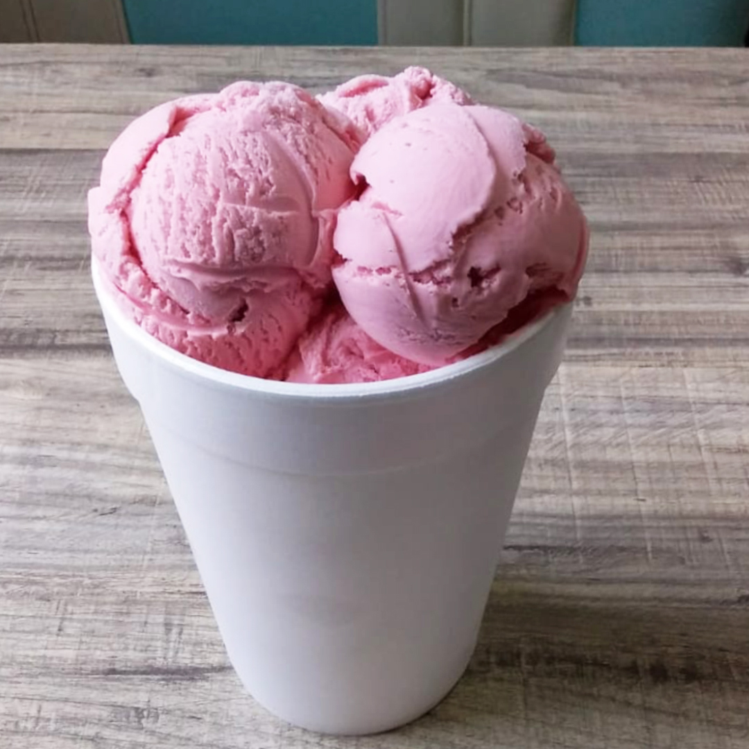 Fresas con crema, sabores de helado , crocantes barquillos rellenos, salsa de fresa y cereza casera, salsa de mora y chantilly