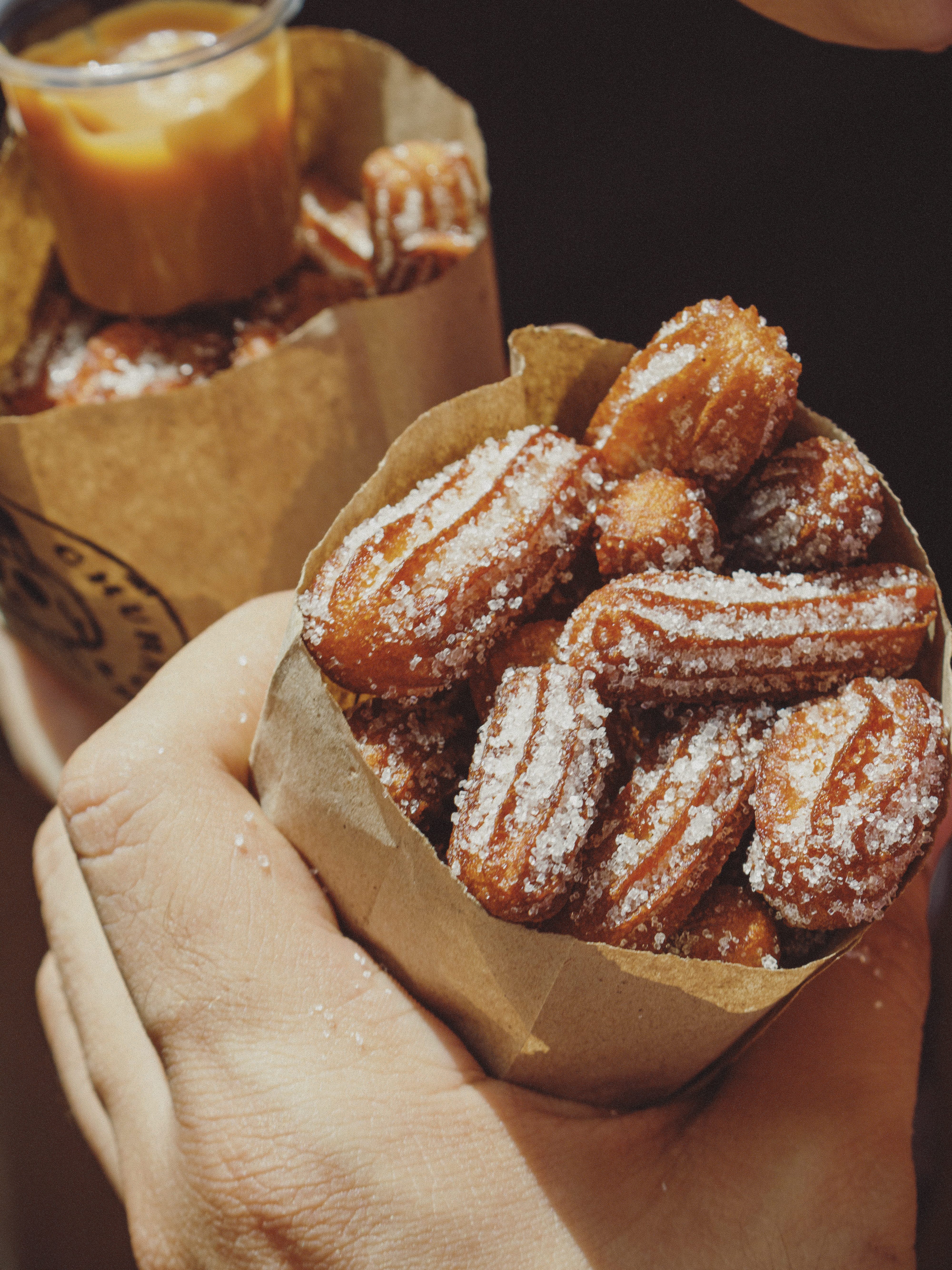 Deliciosos churros, acompañados de arequipe.