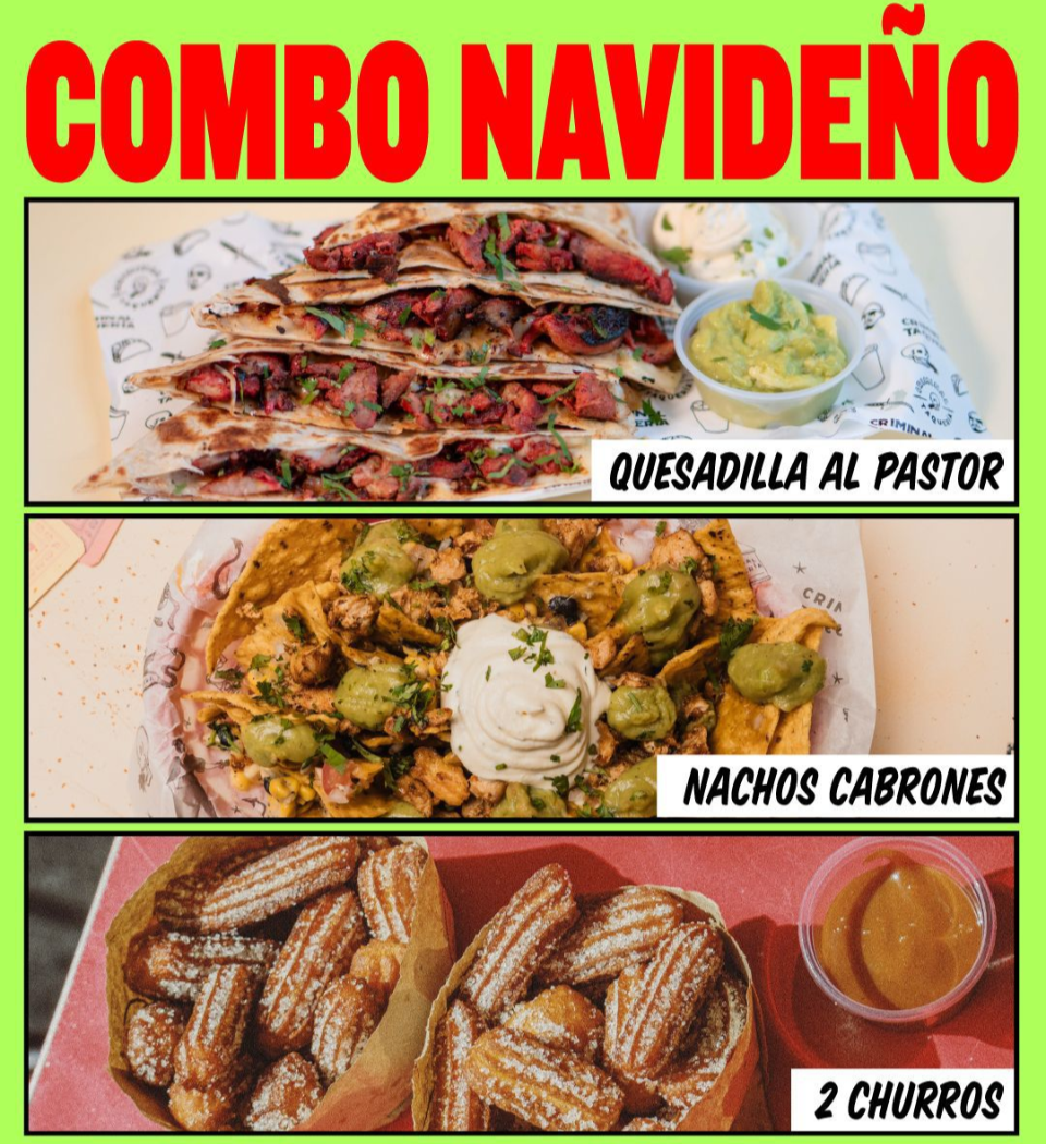 Quesadilla al pastor + Nachos Cabrones + 2 porciones de Churros