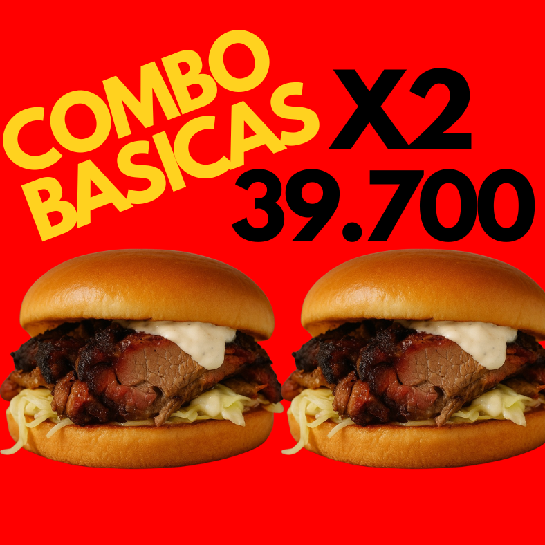 2 sandwiches de brisket, 2 papas fritas, 2 coca cola