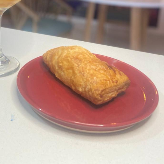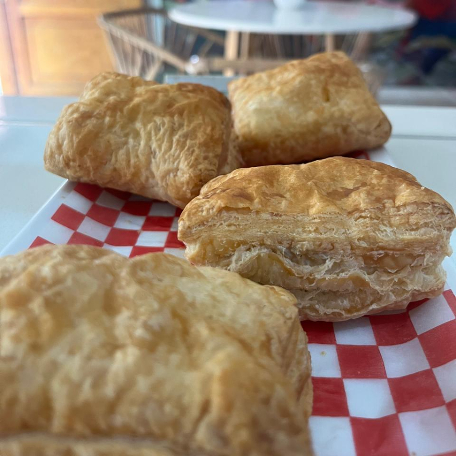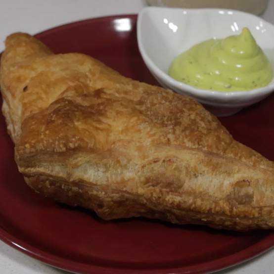 Pastel hojaldrado de carne desmechada en salsa napolitana