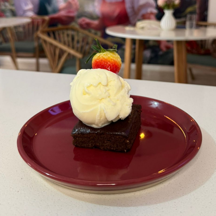 Brownie sin azúcar con endulzante natural y helado con endulzante natural